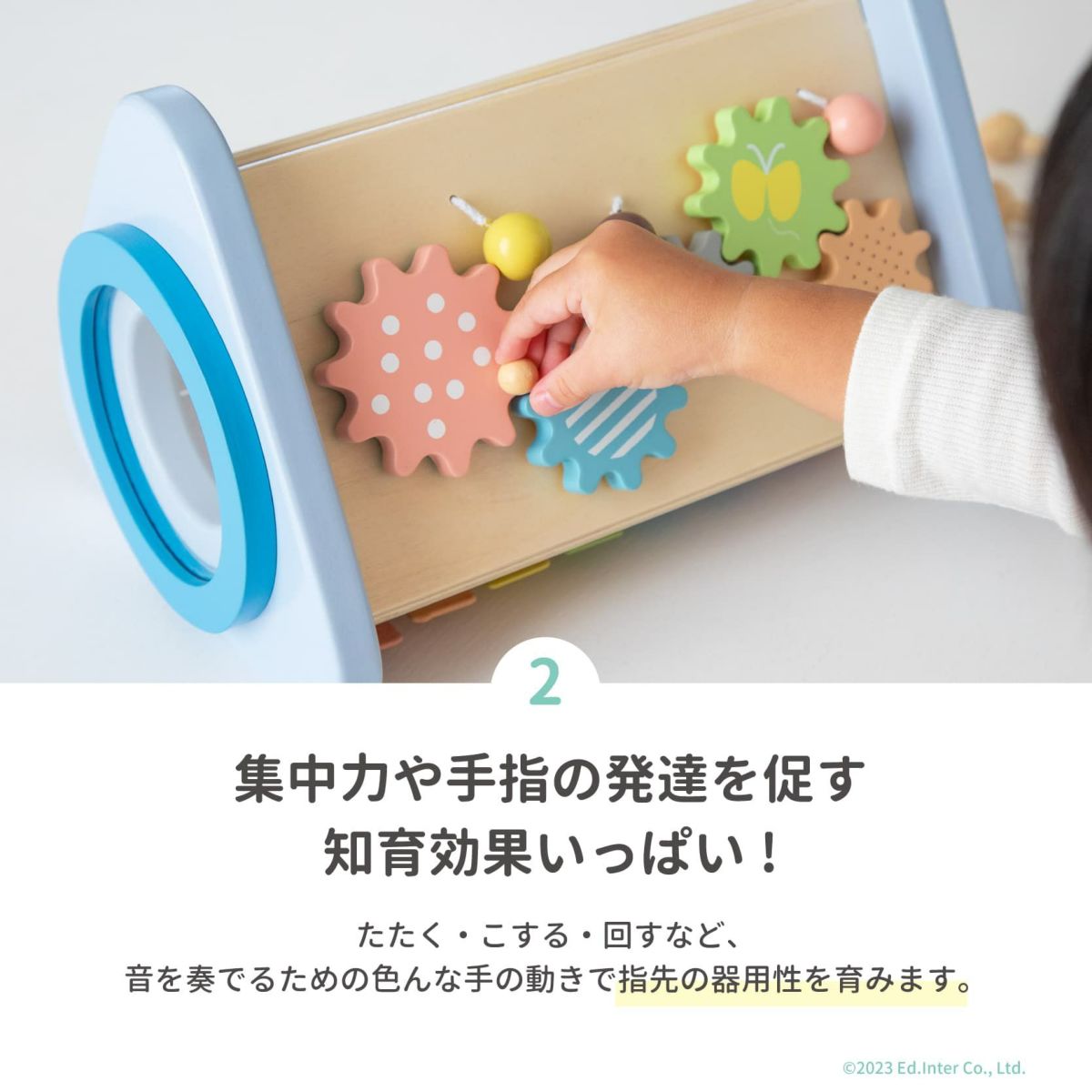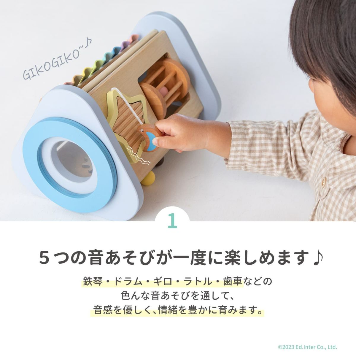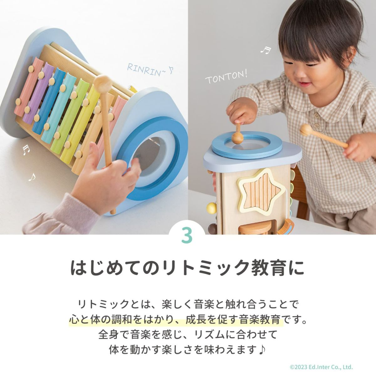 たたく・ふる・転がす。音が鳴るたび、笑顔が生まれる。音楽やリズムに自然と親しみながら、手先や体の動きも育てる知育おもちゃです。音とふれあう体験は、豊かな感性と身体の土台づくりにつながります。