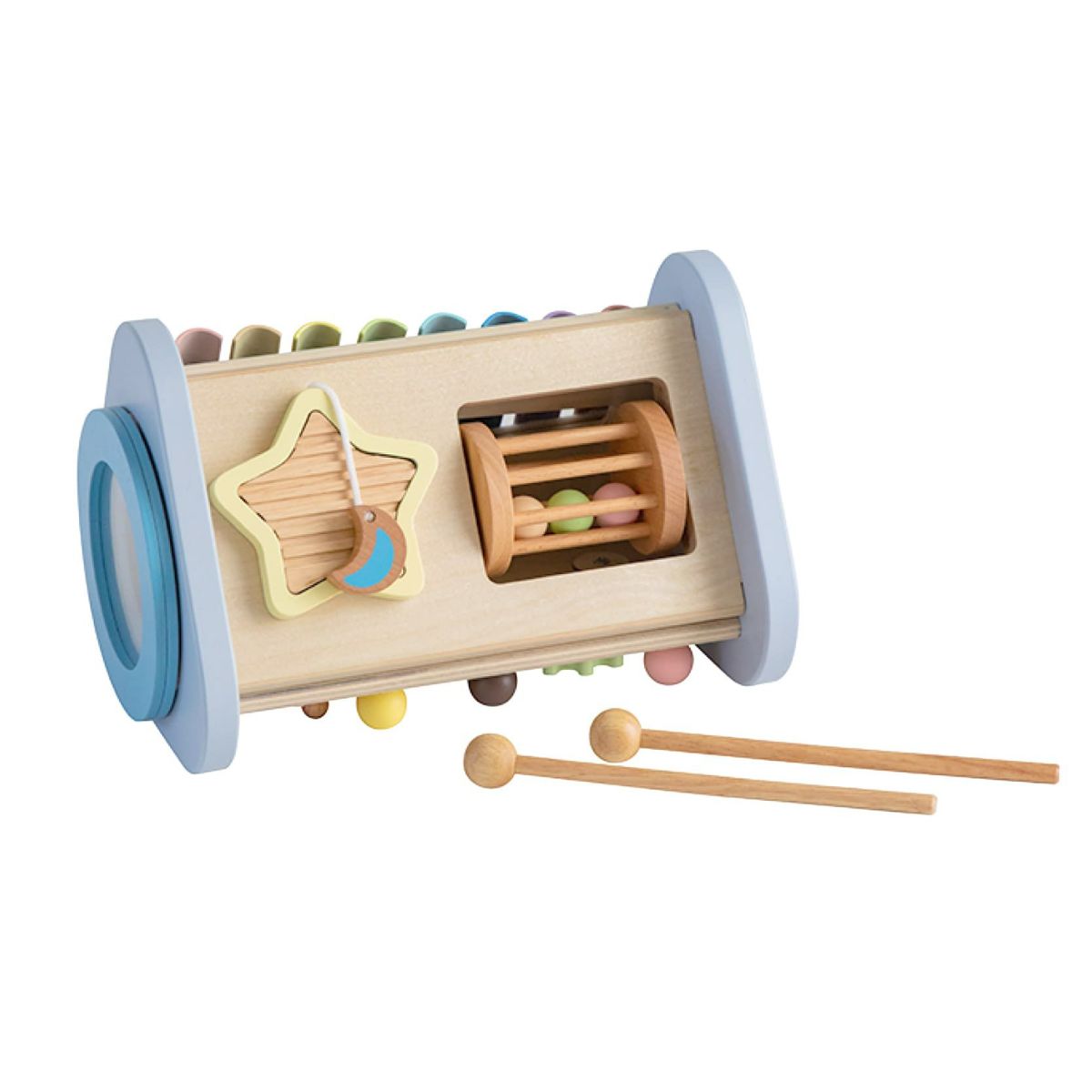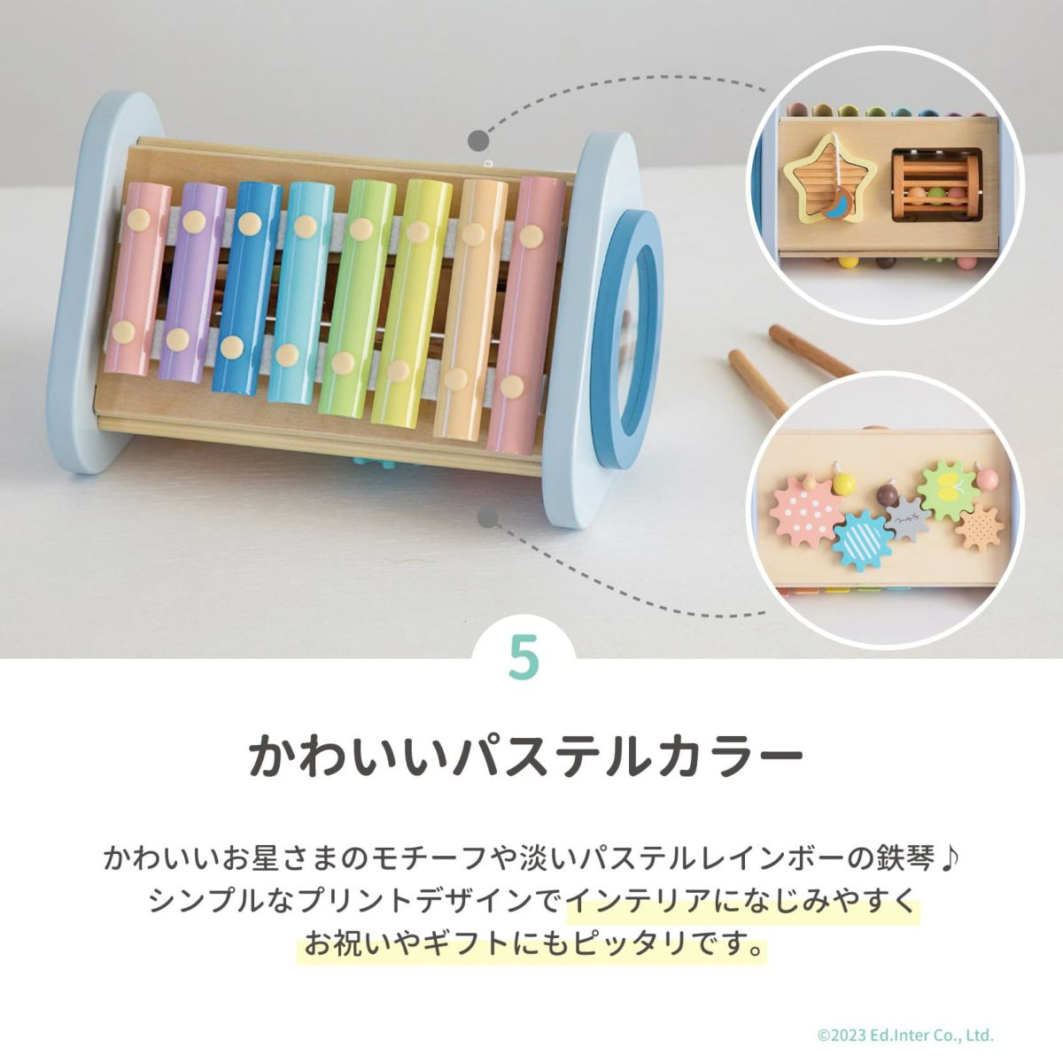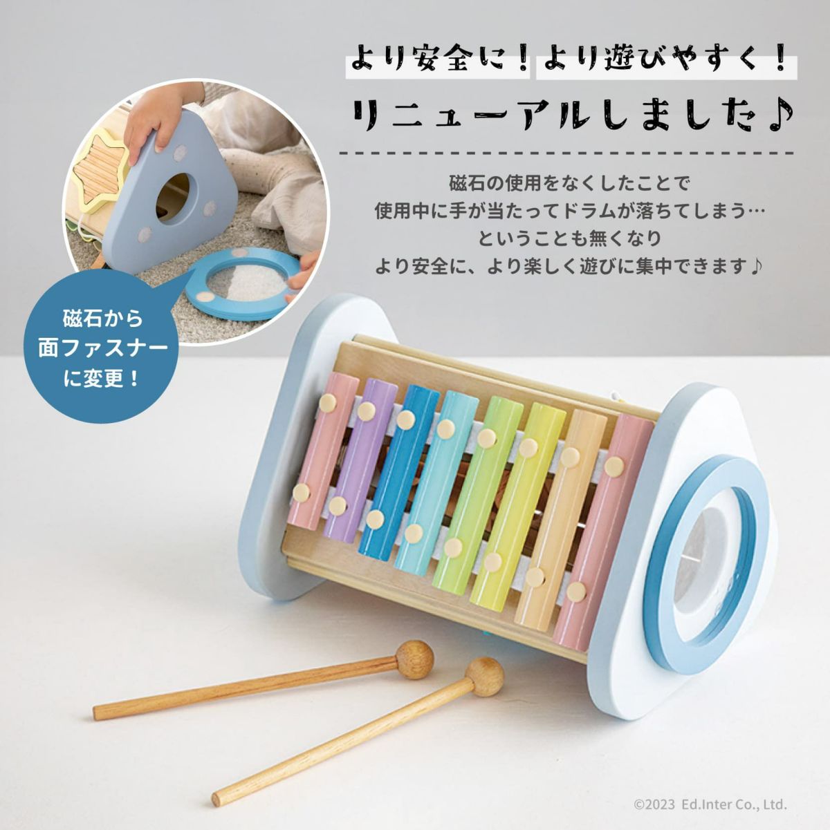 たたく・ふる・転がす。音が鳴るたび、笑顔が生まれる。音楽やリズムに自然と親しみながら、手先や体の動きも育てる知育おもちゃです。音とふれあう体験は、豊かな感性と身体の土台づくりにつながります。