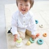 リングを入れて積み上げていくベーシックなスタッキングタワー。ポールがあるので狙って入れやすく、はじめてのスタッキングトイにぴったりです。