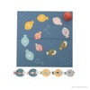紙製のボードにマグネットシートのさかなを並べたら、マグネットキャッチャーを握ってさかなをピタッとキャッチしましょう。目的のピースを狙って捕まえ、マグネットから取り外すことで目と手の協調性を育みます。