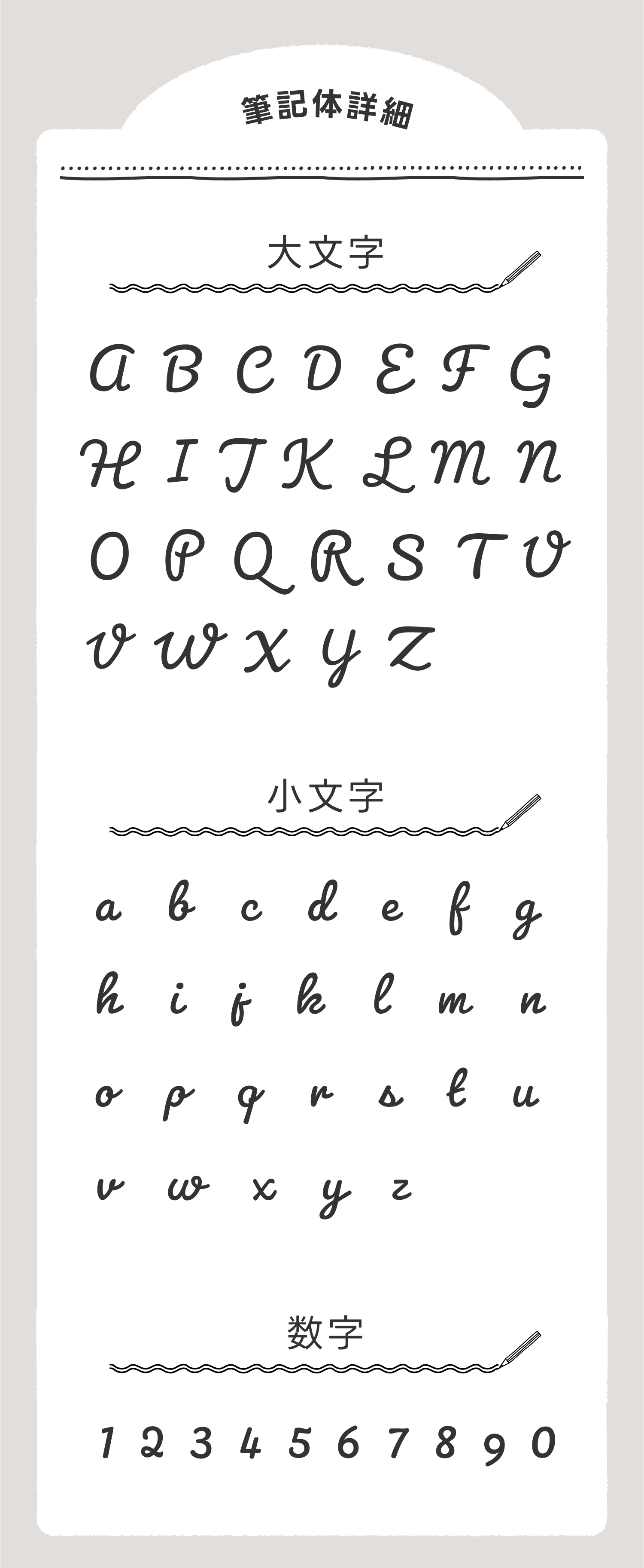 ※筆記体は大文字のみでの作成ができません。